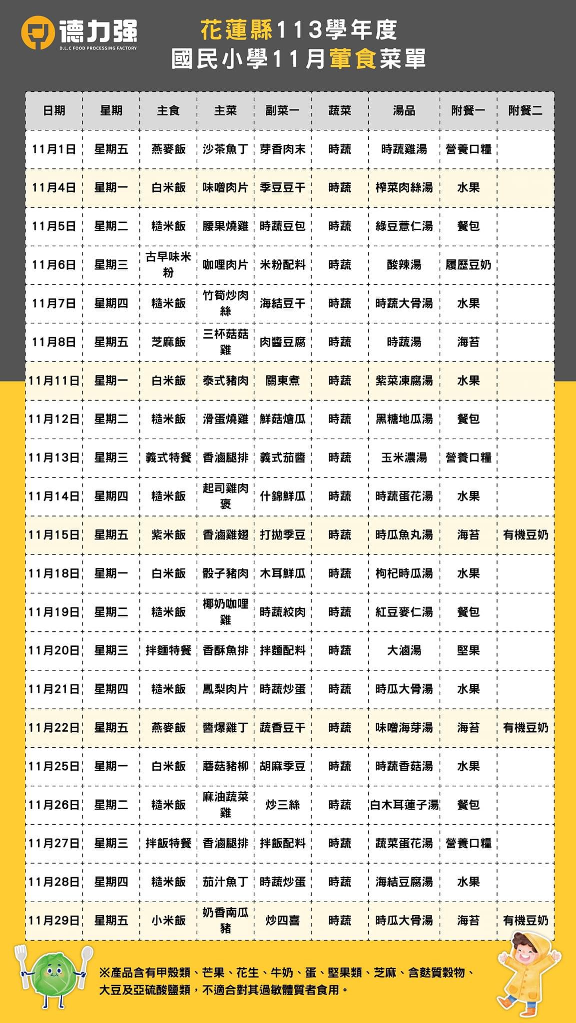 3) 花蓮縣113學年度第1學期11月國小葷素食菜單-德力強(非偏鄉).xlsx