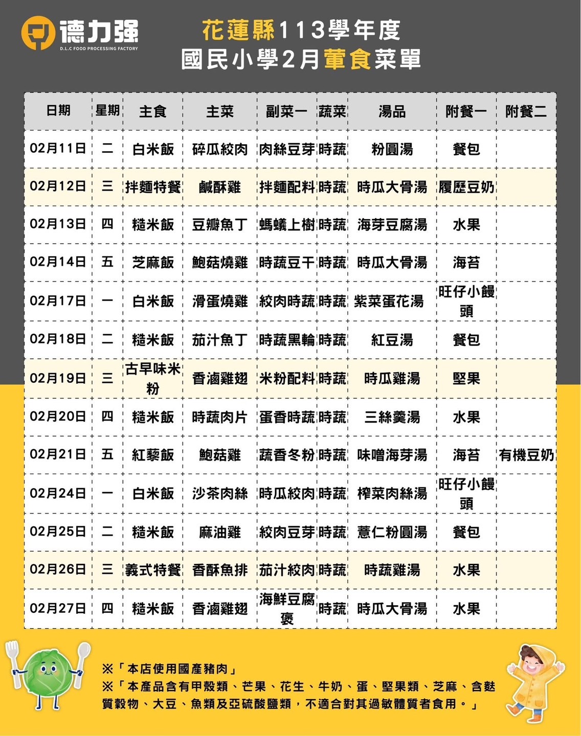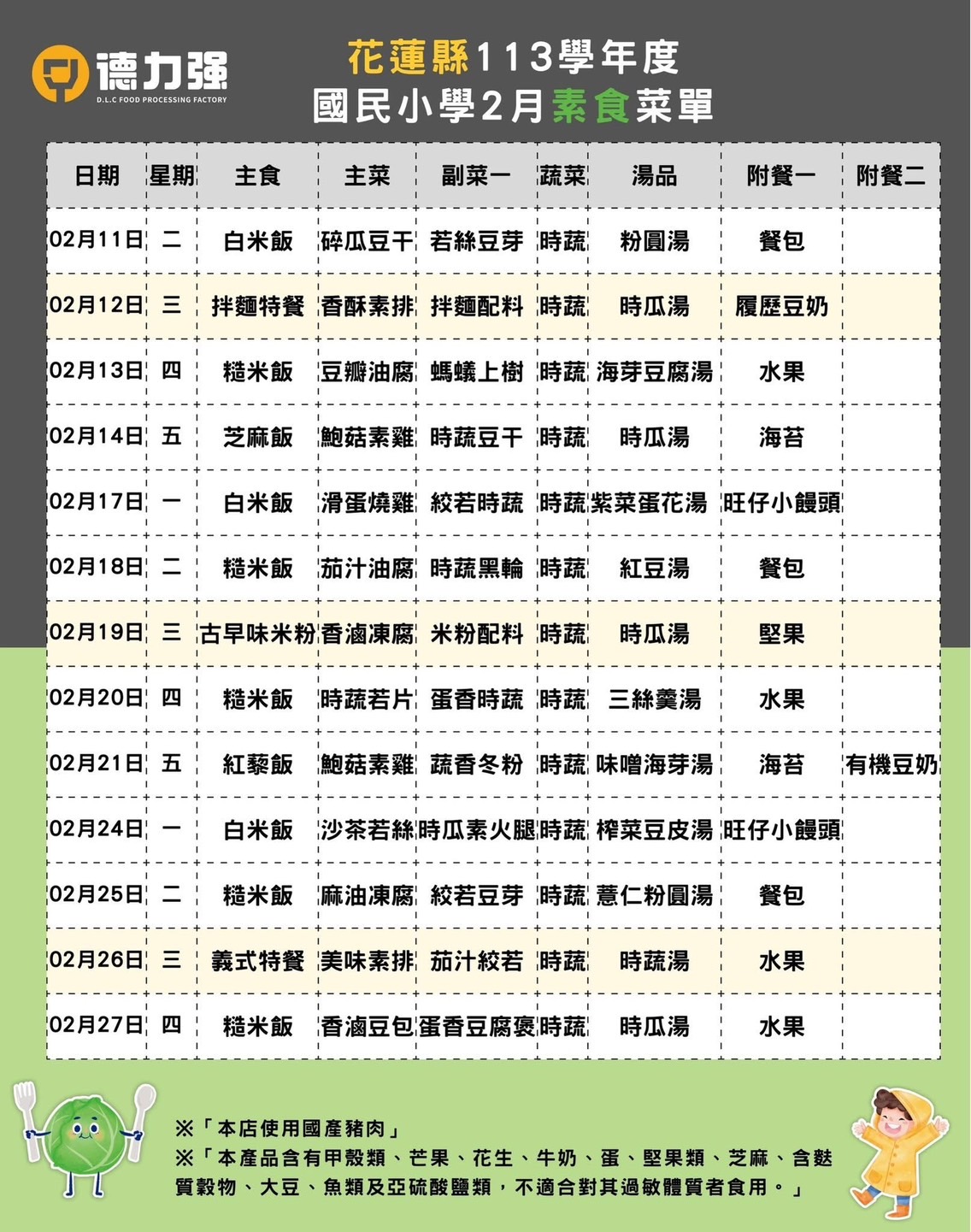 3) 花蓮縣113學年度第2學期2月國中小葷素食菜單-德力強(非偏鄉計畫學校).xlsx