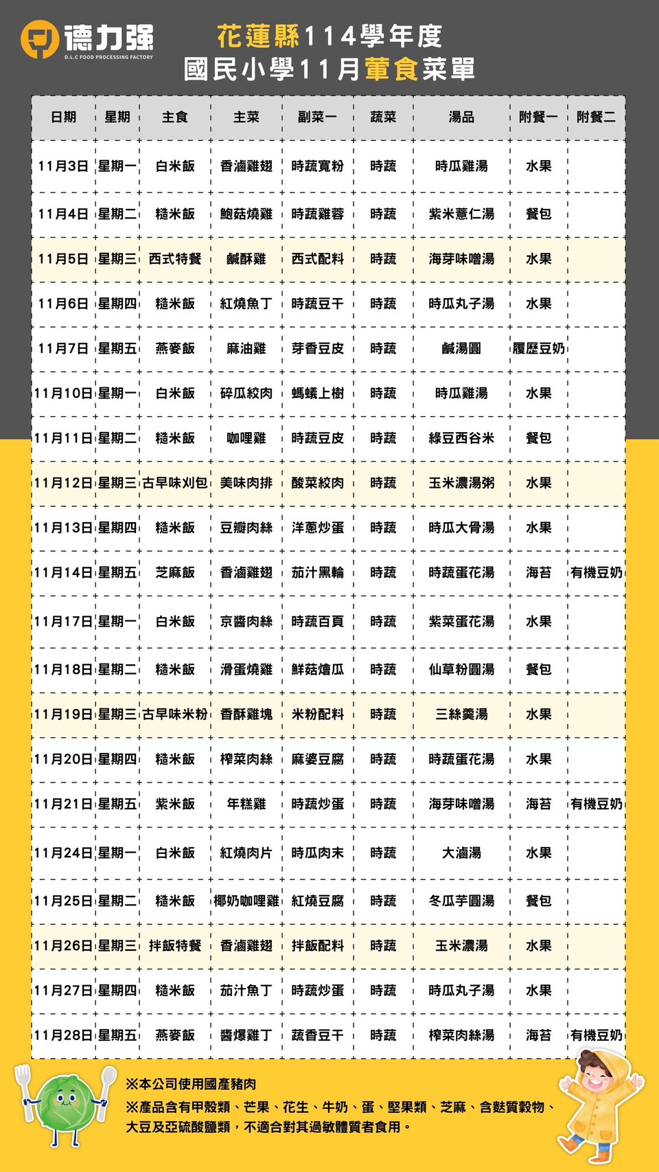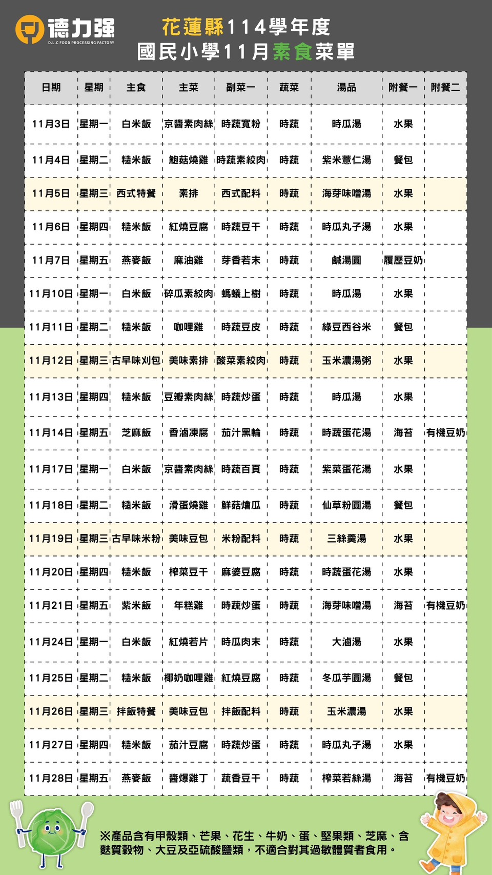 114年11月午餐葷素食菜單